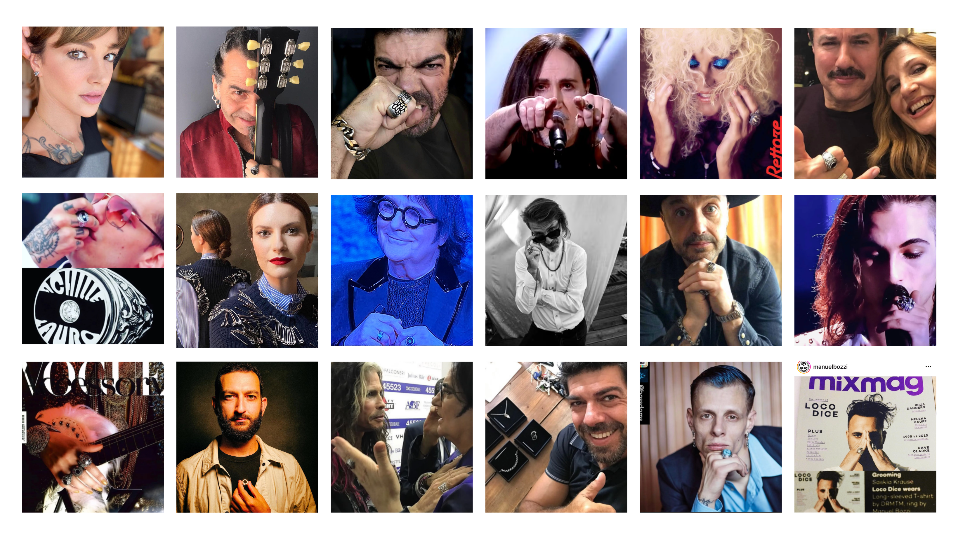 There are countless artists on the international scene who wear Manuel Bozzi's creations every day.